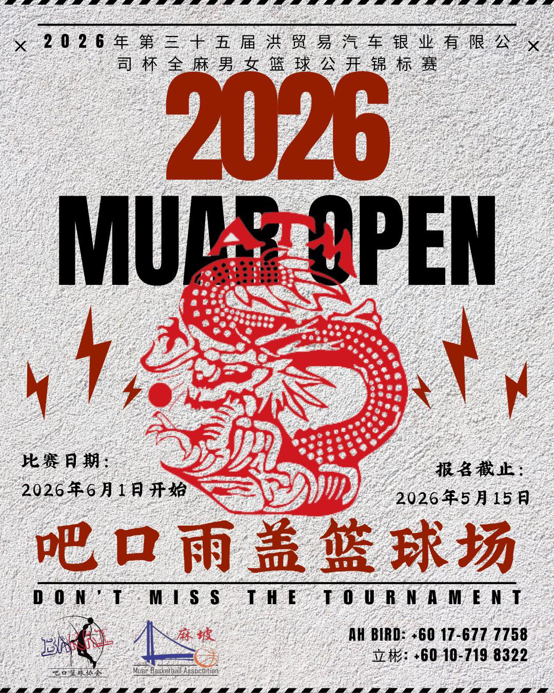 第三十五届洪贸易汽车银业有限公司杯全麻男女篮球公开锦标赛开始接受报名 赛期:1/6/26开始报名截止:15/5/26比赛地点:吧口雨盖篮球场 有兴趣参加者,欢迎点击链接 获取更多详细说明https://drive.google.com/file/d/1_qOpX2d48Vl6DsjnjJjzqAAcHltMPQ7H/view?fbclid=IwY2xjawRSxtFleHRuA2FlbQIxMABicmlkETFWU0dLN2FidXM2QTNYUFFUc3J0YwZhcHBfaWQQMjIyMDM5MTc4ODIwMDg5MgABHn5xz0ABjOMeLjiJ_mtYp1hxj-dIPLyL8fkU-T1qXZx_TGzSdZDaIZK1814o_aem_QRpzJoBa2v4Hq-WMU8jDdw